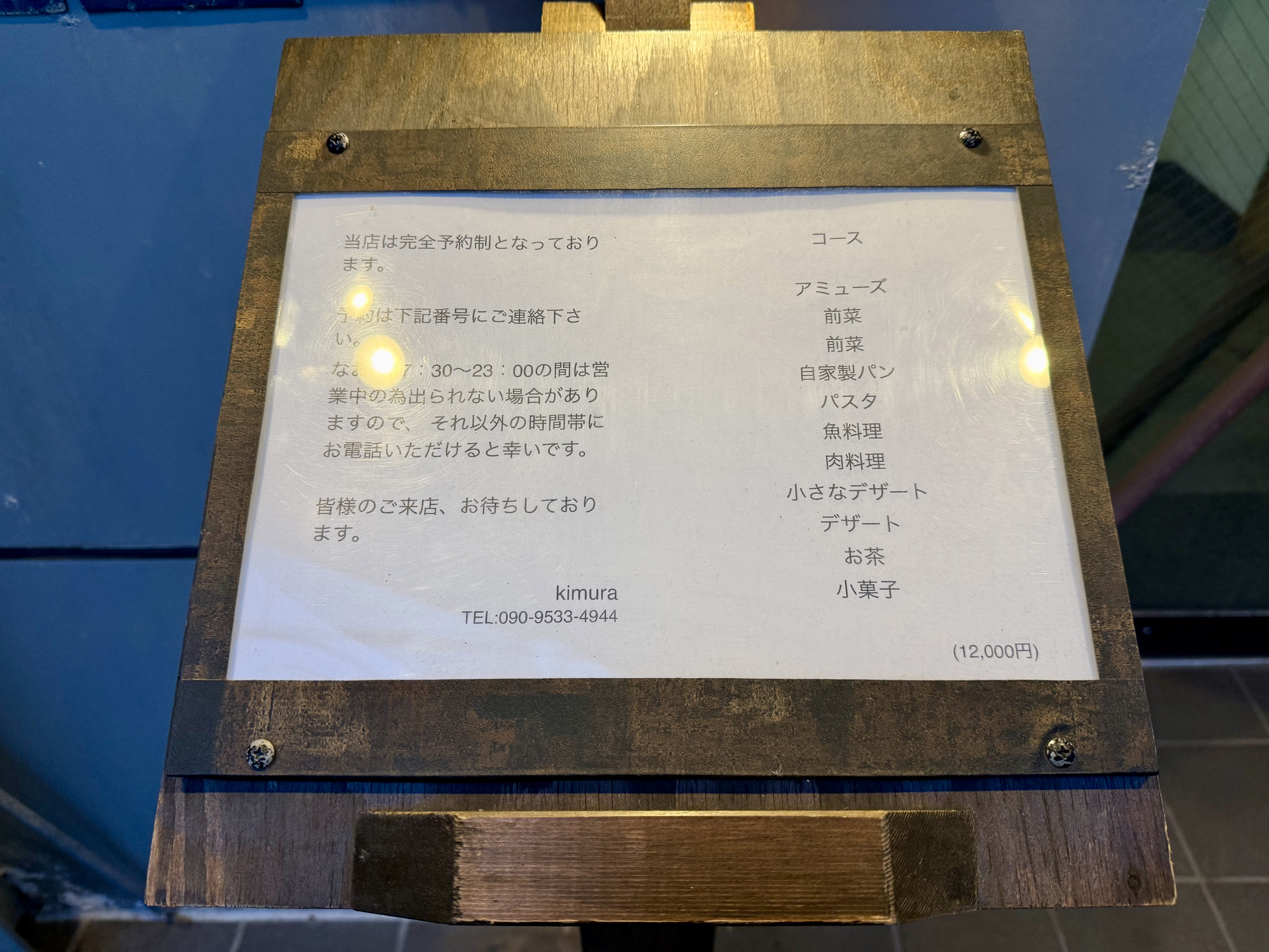 2026年3月現在は¥12,000のおまかせコースのみ、事前予約制。ワンオペ営業の為、訪問客の予約時間がずれている場合等は途中で提供までに若干時間はかかる。が、この手の飲食店としては十分許容範囲内。4年振りの再訪時は満席だったが、お一人でテキパキと回しており好印象。